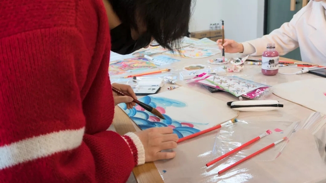 润笔、调色、勾线、上色,同学们体会着DIY的乐趣。