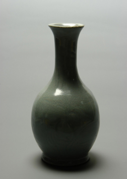 (汝窑天蓝釉刻花鹅颈瓶)